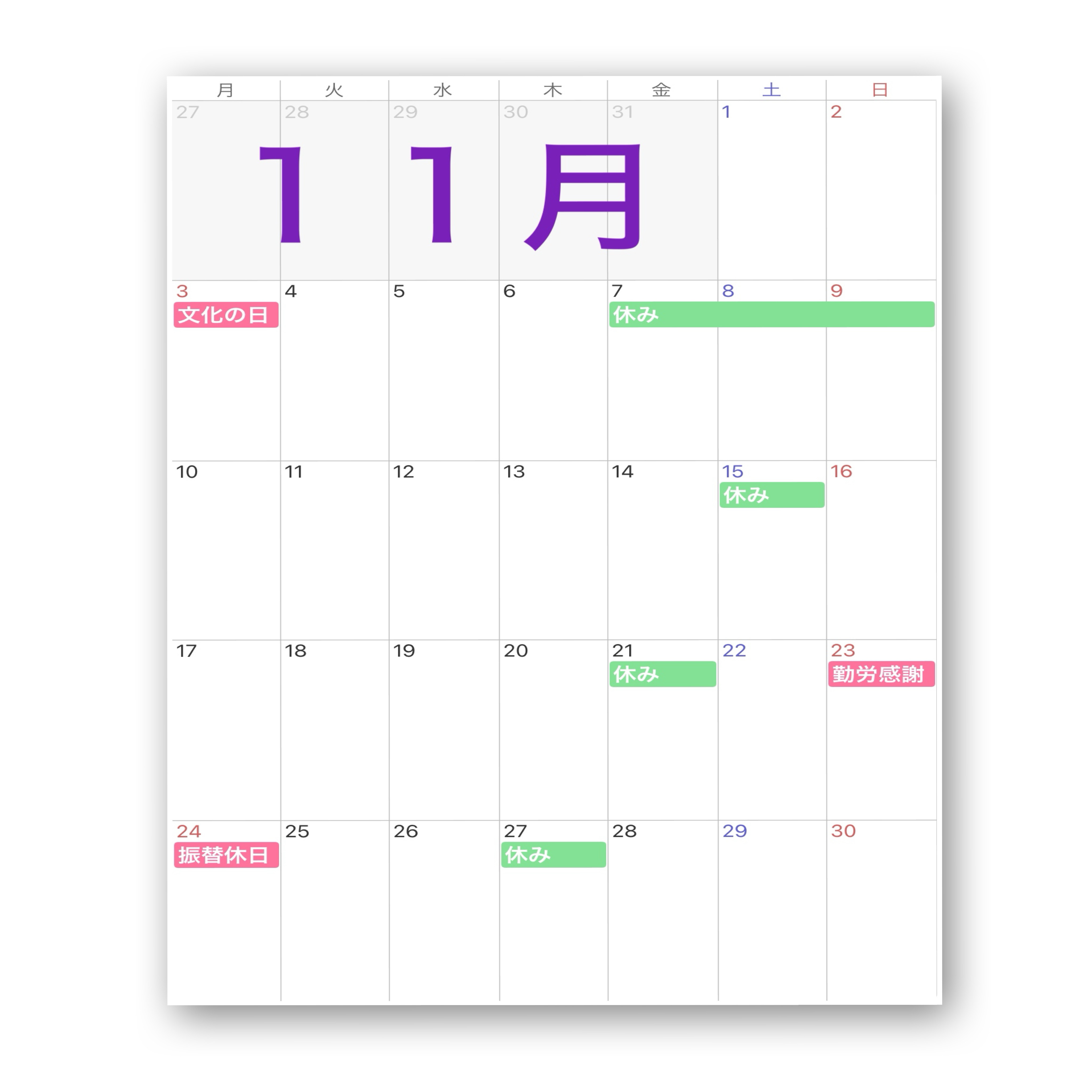 11月のスケジュール